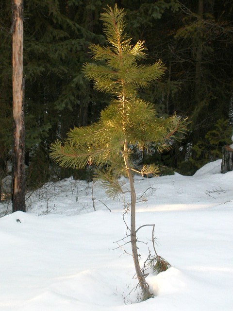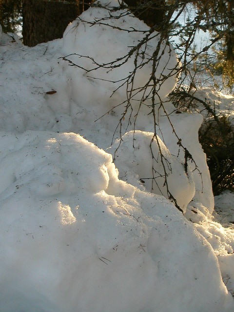 Two different tableaux that appealed to me for different reasons. I like the sunlight striking part of the little pine as it stands by itself, surrounded by the snow. I also liked the effect of the bare branches spread over the snowdrift in the second scene.