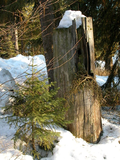 I could go on about how stumps in snow are a study in contrasts, or whatever; but heck, I just like how they look.
