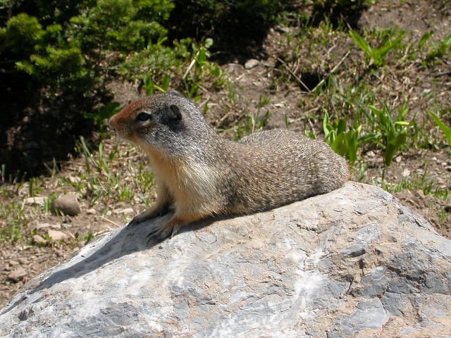 A ground squirrel poses for visitors at Logan Pass in Glacier National Park. I swear, he really was posing. He would hold one photogenic position for a minute, then calmly change to another while the humans danced around to line up the next shot. You could tell this was old hat to him.